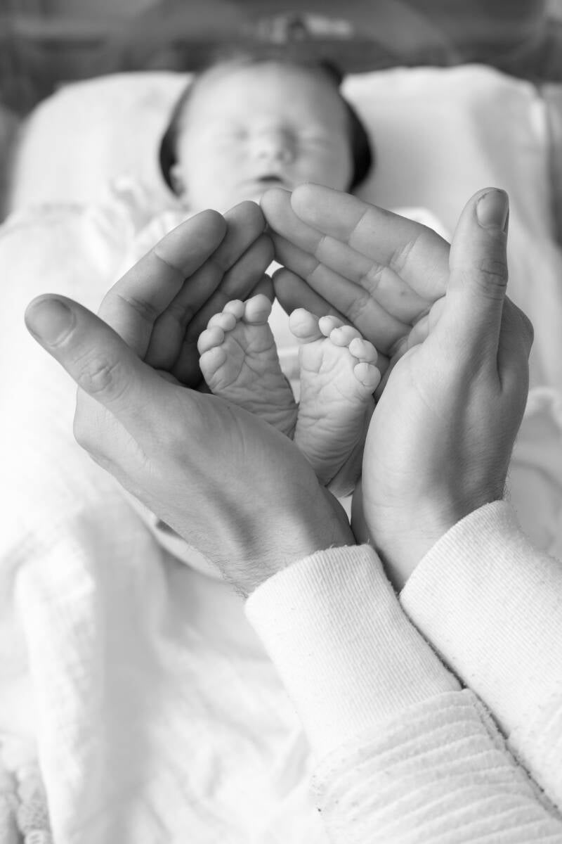 Maar eindelijk werd ik opgehaald, en op weg naar de OK vroeg de verpleegster nog of ik wist wat ik kreeg. 'Een meisje eigenwijsje,' luidde mijn antwoord. En aangekomen op de OK trof ik dezelfde mensen weer als in de kraamsuite. Niet heel veel later hoorde ik het woord 'incisie', maar als ze dat niet gezegd hadden, had ik het wel gevoeld. Ik voelde er best wel wat van. Ik focus me op alles om me heen, de lijn die ik zie op de monitor aan mijn rechterkant met mijn vitale functies, fungeert als een afleiding zodat ik zo min mogelijk focus op wat er aan de andere kant van het doek gebeurt. Ik voel een stekende pijn en een hoop druk, en uiteindelijk schommel ik op en neer op de tafel, omdat ze al heel erg vast en diep zat in mijn bekken. Maar uiteindelijk, om 1:41u, is Hailee daar. Het doek wordt snel omlaag gedaan en ik zie een perfecte baby met twee kleine oogjes de kamer inkijken. Maar ik hoor niks. Het blijft stil. Ik doe ook weer mijn ogen dicht om me te focussen op de pijn, maar mijn gedachten zijn enkel en alleen bij Hailee. Waarom hoor ik niks? Als ik naar achteren kijk, naar de ruimte waar ze haar mee naartoe hebben genomen, zie ik twee verpleegkundigen vanuit de OK het kamertje in kijken. Als ik vraag hoe het gaat, krijg ik te horen dat ze hun best doen. Na een minuut of twintig word mijn houding veranderd. Ze hebben mijn buikwond dicht gemaakt en nu is de andere wond aan de beurt. Zoals ik het zelf toen dacht, zeg ik het ook. Ik word in een ware SM-installatie gebracht en ze beginnen me te hechten. En dat heb ik gevoeld. Twee plaatselijke verdovingen verder, voel ik nog steeds wat, maar het maakt me niet uit. Want op dat moment, wordt er op mijn schouder getikt. Ik kijk opzij en zie een man in een blauw pak staan. Aan de blik in zijn ogen kan ik al opmaken wat hij komt vertellen.